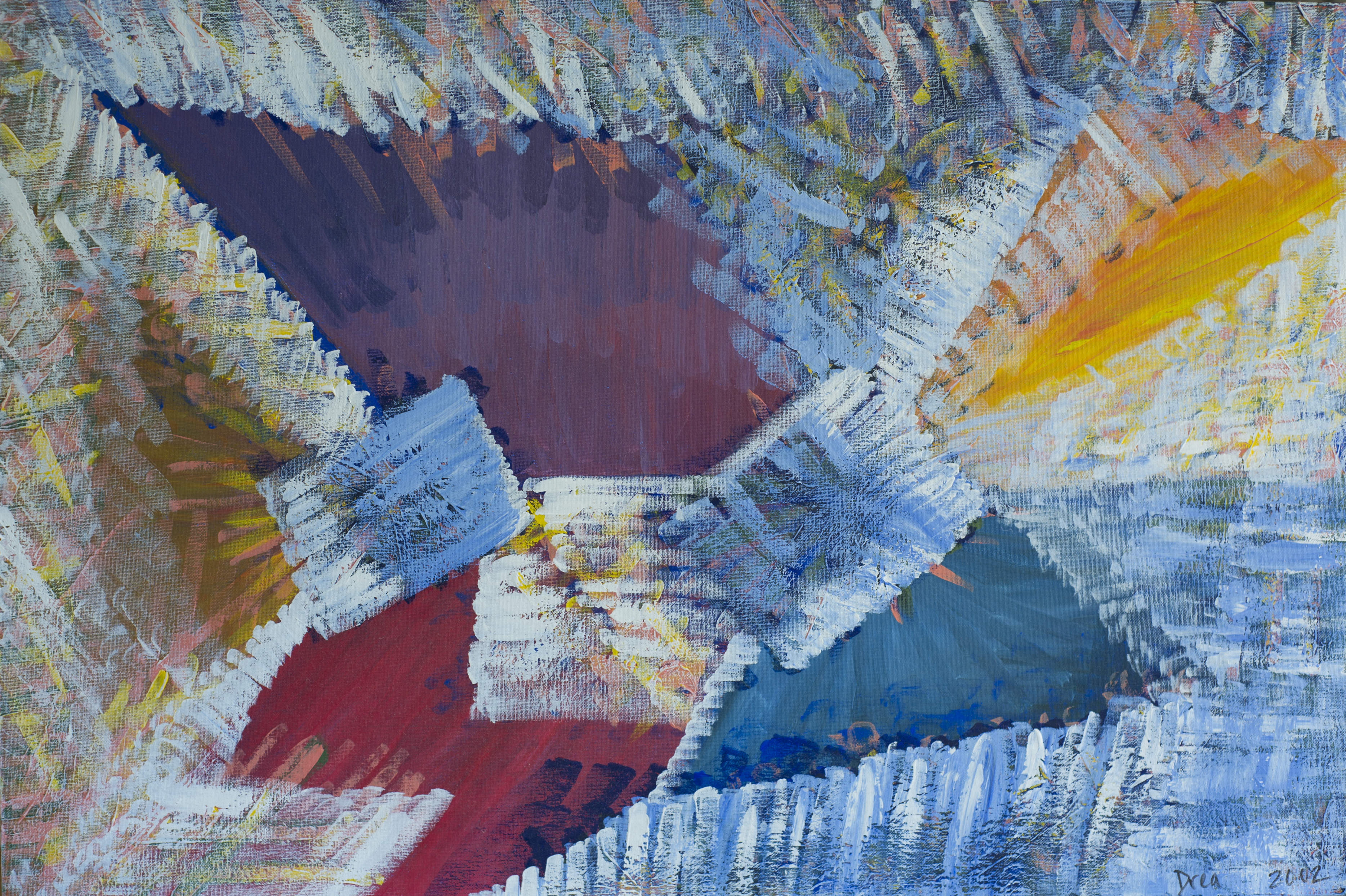 Drea began painting in 2002, and her paintings express, acknowledge and celebrate her self expression as an artist, and encourages others to express their unique selves. “In each painting I am committed to creating sacred space, portals into imagination using abstract expression, color and texture. My paintings express an internal landscape that provokes emotions.”