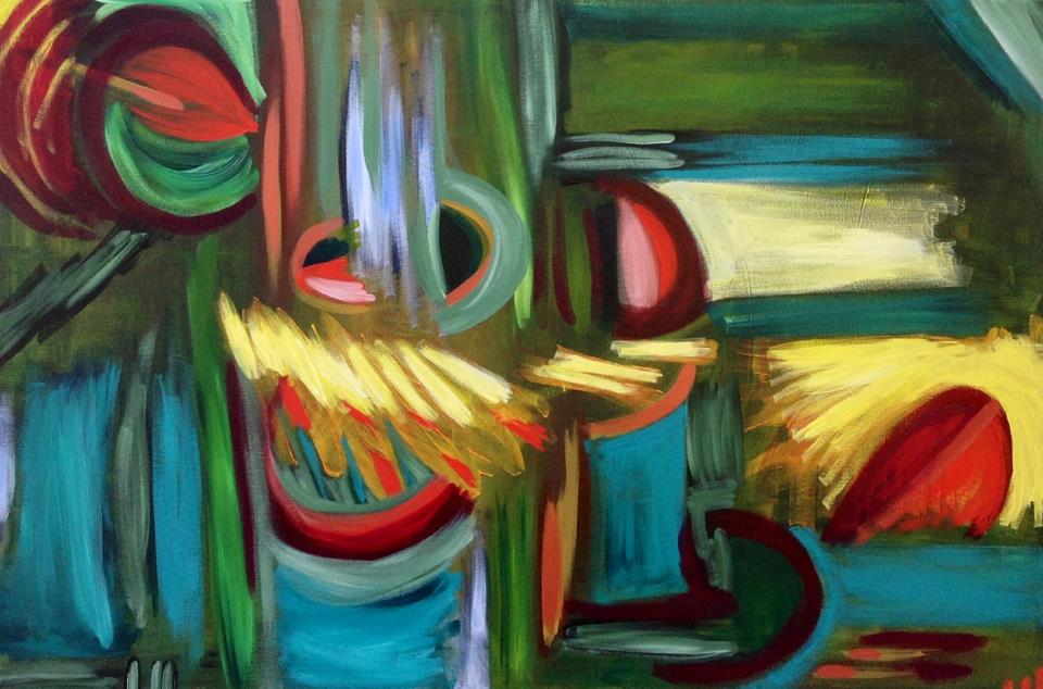 How does turning a painting help you to see the values better, the “weight” of color, the shapes in the painting? The cool thing about abstract art is looking at it from different directions…
